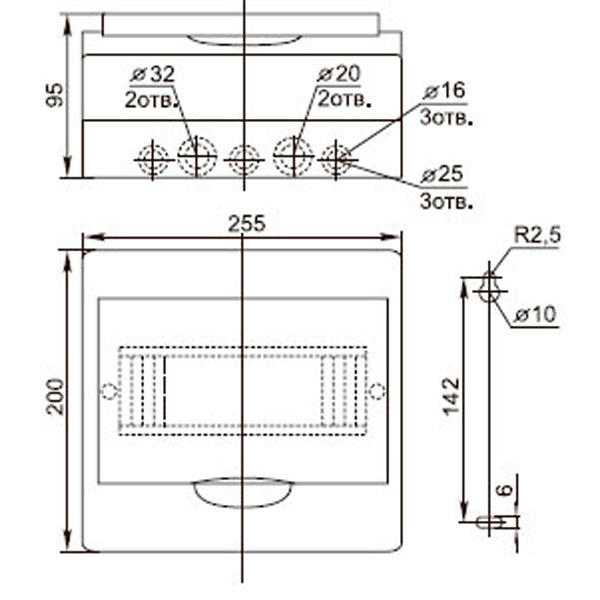 • Простое введение кабелей, проводов через выштампованные вводы для проводников на задней и боковых стенках корпуса.