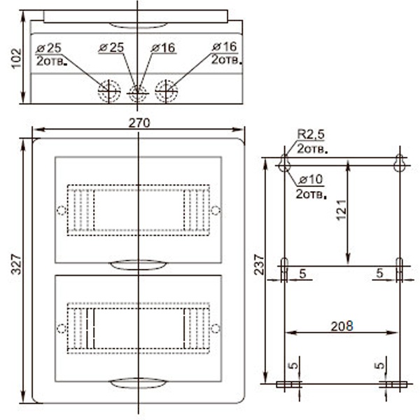 • Простое введение кабелей, проводов через выштампованные вводы для проводников на задней и боковых стенках корпуса.