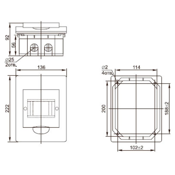 • Простое введение кабелей, проводов через выштампованные вводы для проводников на задней и боковых стенках корпуса.