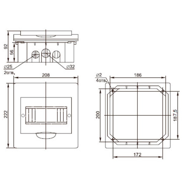 • Простое введение кабелей, проводов через выштампованные вводы для проводников на задней и боковых стенках корпуса.