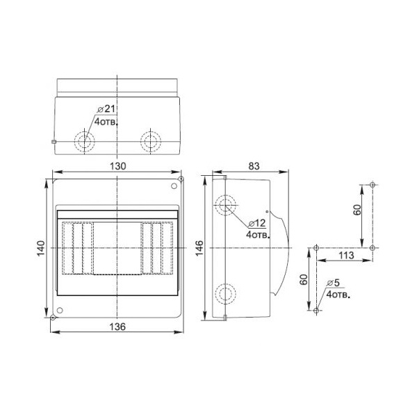 • Простое введение кабелей, проводов через выштампованные вводы для проводников на задней и боковых стенках корпуса.