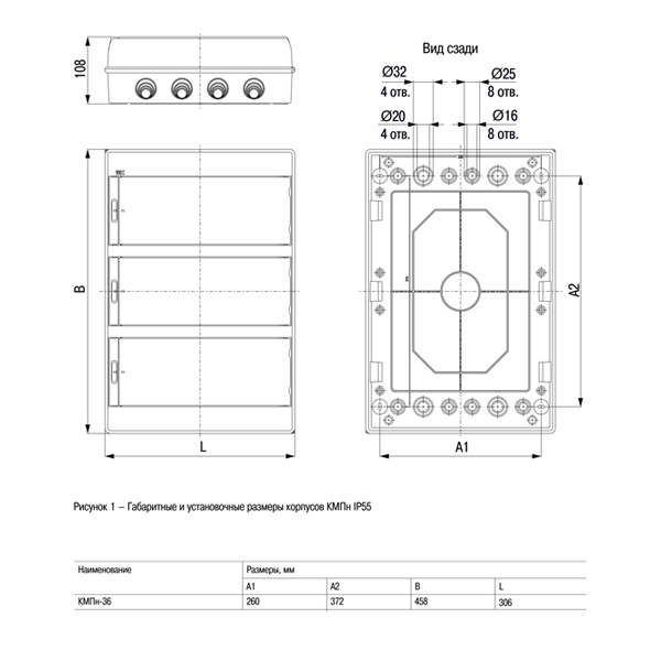• Наличие выламываемых отверстий для ввода кабеля различного диаметра.