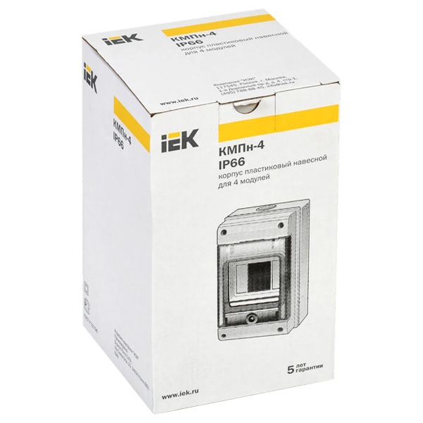 • Щит влагозащищенный КМПн-4 IP66 на 4 модуля навесной пластиковый с прозрачной дверкой ИЭК