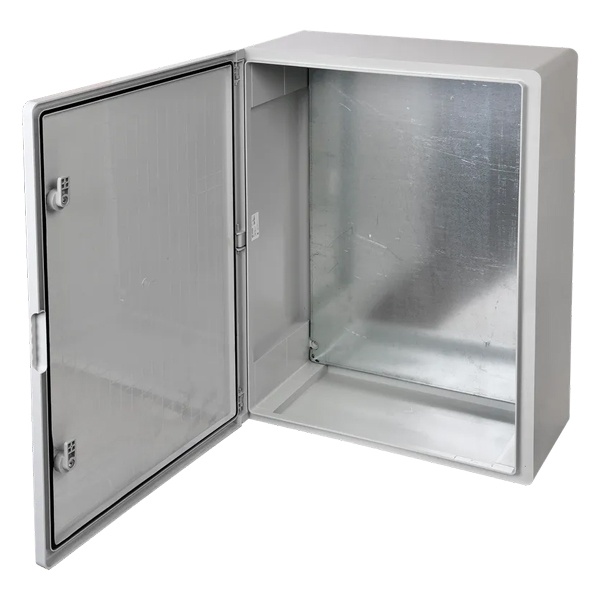 Влагозащищенный электрощит из ударопрочного пластика ЩМПп с монтажной панелью IEK, навесной установки, сплошная серая дверца MKP93-N-705025-65