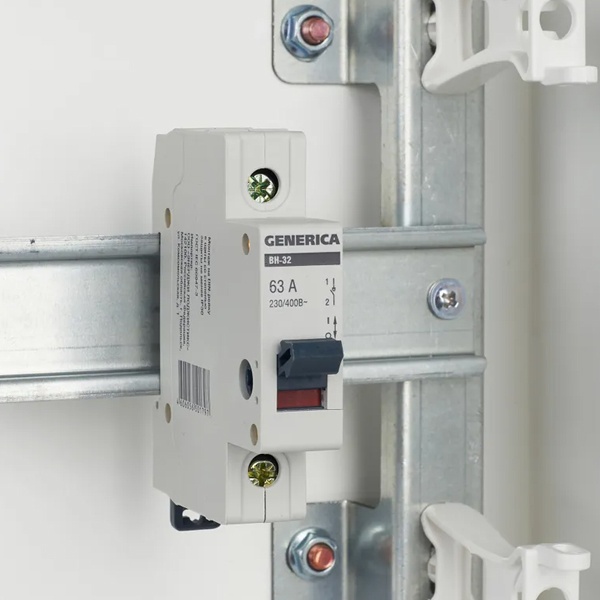 Однополюсный модульный рубильник Generica ВН-32, с током нагрузки 63А. MNV15-1-063