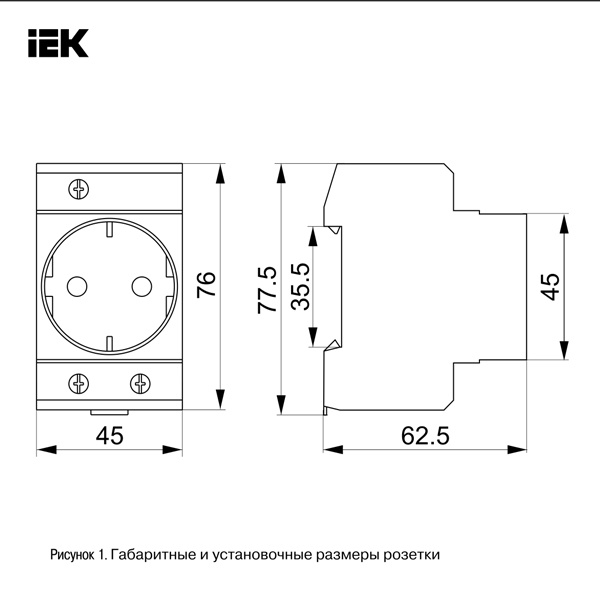 Розетка с заземляющим контактом РАр10-3-ОП IEK на DIN-рейку MRD10-16