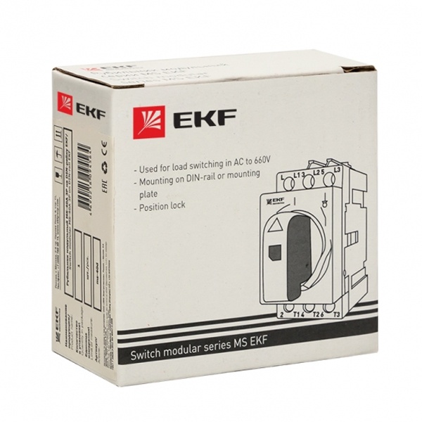 • Рубильник модульный EKF PROxima MS-40A 3P 40А трехфазный (выключатель нагрузки)