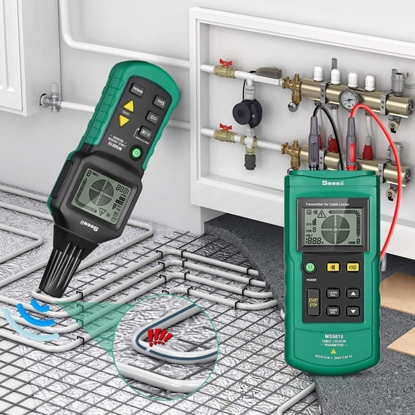 Кабельный локатор Mastech MS6818 - профессиональный прибор предназначенный для обнаружения и локализации металлических предметов, магистралей трубопроводов, линий электропередач, слаботочных кабелей и тп в земле, под фальш-полом и в стенах. Кабелеискатель состоит из генератора сигналов и чувствительного приемника. Обнаружение возможно на глубине до 2,5м в зависимости от способа локации и материала залегания коммуникаций.