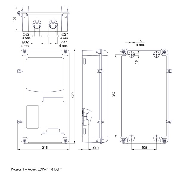 - Наличие выламываемых отверстий для ввода кабеля в верхней и нижней частях корпуса.