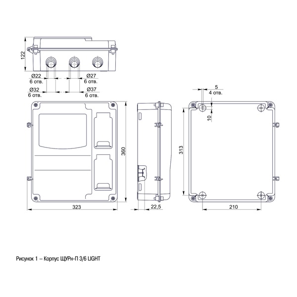 - Наличие выламываемых отверстий для ввода кабеля в верхней и нижней частях корпуса.