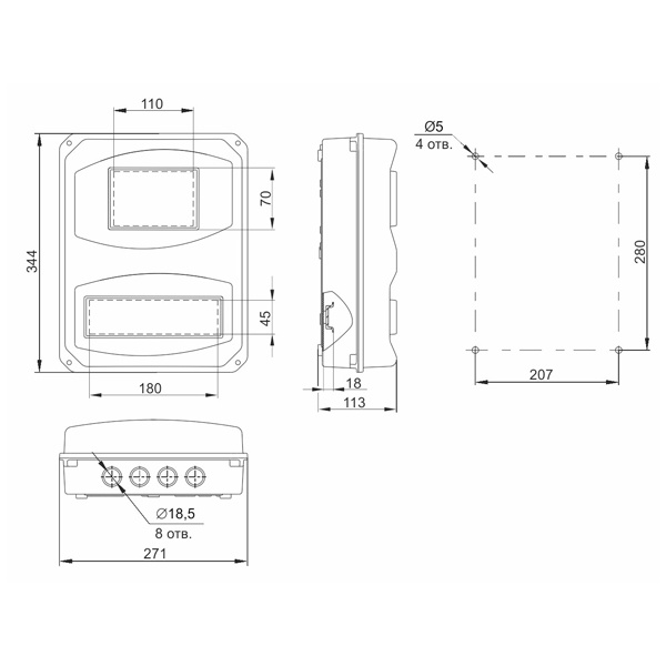• Наличие выламываемых отверстия для ввода кабеля в верхней и нижней частях корпусах.