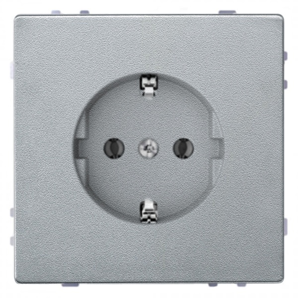 Розетка c заземляюшим контактом серии Merten System M цвета Алюминий MTN237160