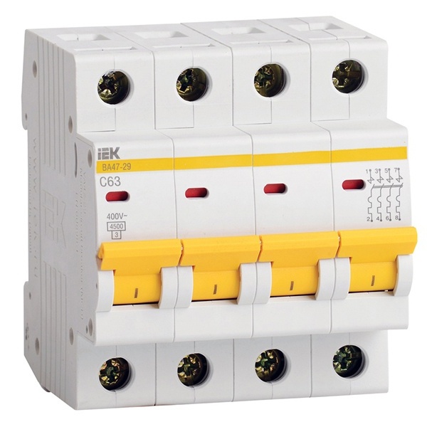 • Автоматический выключатель ИЭК ВА47-29 4Р 6А 4,5кА характеристика С (автомат электрический)