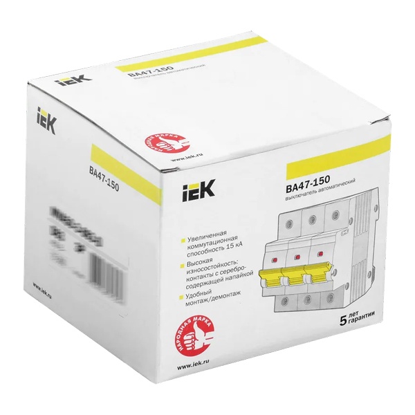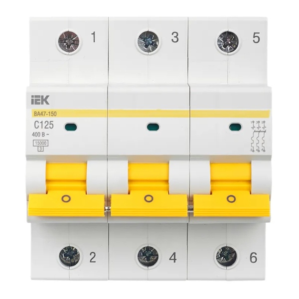 • Автоматический выключатель ИЭК ВА 47-150 3Р 125А 15кА характеристика С (автомат электрический)