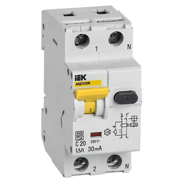 Автоматические выключатели дифференциального тока АВДТ32ЕМ сочетают функции автоматического выключателя и электромеханического УЗО типа А. Отключают защищаемый участок сети при обнаружении тока утечки на землю или сверхтока.