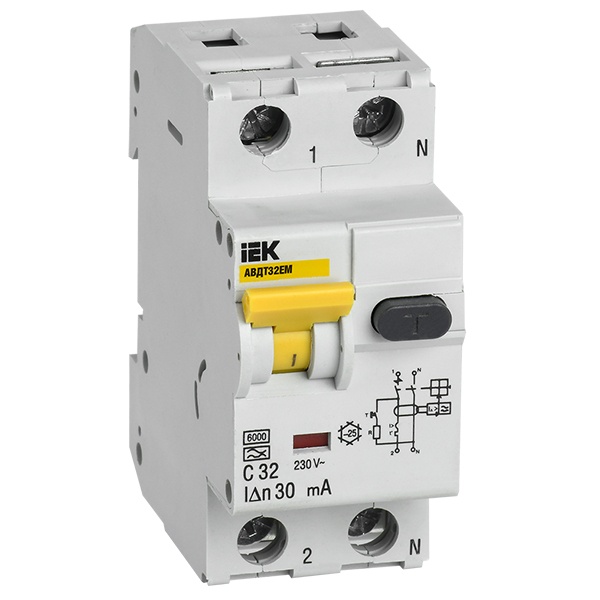 Дифференциальный автомат 2П С32А 30мА тип А однофазный электромеханический 6кА АВДТ32EM ИЭК (дифавтомат, АВДТ) MVD14-1-032-C-030