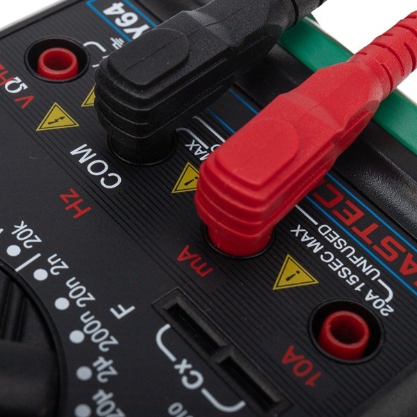 C помощью мультиметра MY64 можно проверятьполупроводниковые диоды и прозванивать электрические цепи. Результаты измерений выводятся на крупный цифровой 31/2-разрядный ЖК-дисплей. Питание мультиметра осуществляется от одной батареи 9В типа "Крона" Система автоматического отключения питания выключит прибор после примерно 40 минут его бездействия. Яркий и заметный защитный кожух из мягкого полимера, входящий в комплект поставки мультиметра Mastech MY64, сохранит прибор от повреждения при падении или ударе. Рабочее положение измерительного прибора можно изменять с помощью упора на тыльной стороне корпуса.
