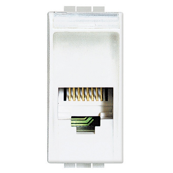 Розетка второй категории со скоростью передачи до 4Мбит/с прекрасно подходит для создания телефонной сети, как в офисе, так и дома. Двухмодульная розетка с одним гнездом для подключения. С лицевой панелью изготовленной из негорючего пластика высокого качества производства от компании Бтичино, выполнена в белом цвете. Размер 45*45 мм