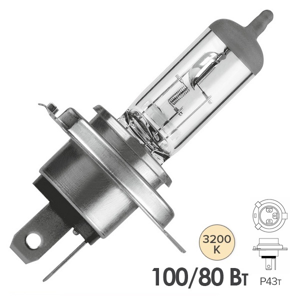 Современная высокопроизводительная галогенная лампа для внедорожных автомобилей известного бренда Neolux серии Power Light с повышенной яркостью и мощностью представляет собой двухнитевый осветительный прибор типа Н4 с цоколем Р43t. Эта лампа предназначена для фар головного света легковых внедорожных автомобилей и работает от бортовой сети 12 Вольт. Благодаря своей прочности, универсальности и яркому световому потоку, она может использоваться в самых трудных условиях, например: в сельском и лесном хозяйстве, в строительстве и при спасательных работах для спецтехники на бездорожье. Достоинством этого осветительного прибора является повышенная яркость, благодаря чему водители смогут раньше распознавать препятствия или потенциальную опасность. Световой поток устройства составляет 2900 и 1500 Люменов для каждой нити накаливания соответственно. Цветовая температура лампы достигает 3200 Кельвинов. Изделие обладает следующими параметрами: