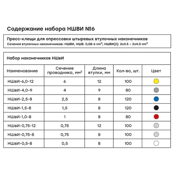 Набор НШВИ №6 (0,5-6мм2) с инструментом ПКВ-6-4 EKF PROxima