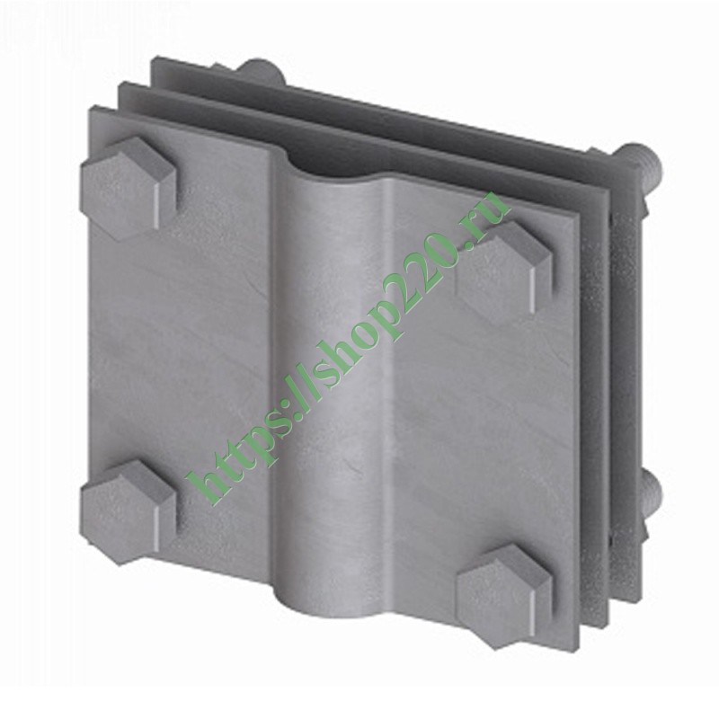 Данный соединительный элемент заземления от известной компании DKC серии Jupiter представляет собой четырехболтовой зажим из нержавеющей стали. Его предназначение состоит в надежном подключении вертикального заземлителя диаметром 14,2 мм к полосе размером 40х4 мм или 25х4 мм. Соединитель подходит для модели стержневого заземлителя с муфтовым типом соединения или на основе безмуфтового крепления с омедненным покрытием. Крепление соединителя с вертикальным стержнем производится не требует применения сварочных работ. Внешне зажим представляет собой пластины размером 70х80 мм, закрепленные 4 удлиненными болтами из стали. Материалом изготовления соединителя является высококачественная сталь, которая отличается хорошими антикоррозийными свойствами. Одна часть соединителя адаптирована под стержень, а другая имеет посадочное место для шины заземления. Между пластинами предусмотрена разделительная перегородка, которая необходима для предотвращения очага биметаллической коррозии во время контакта разнородных металлов. Общая высота изделия составляет 46 мм, а масса – 350 г.
