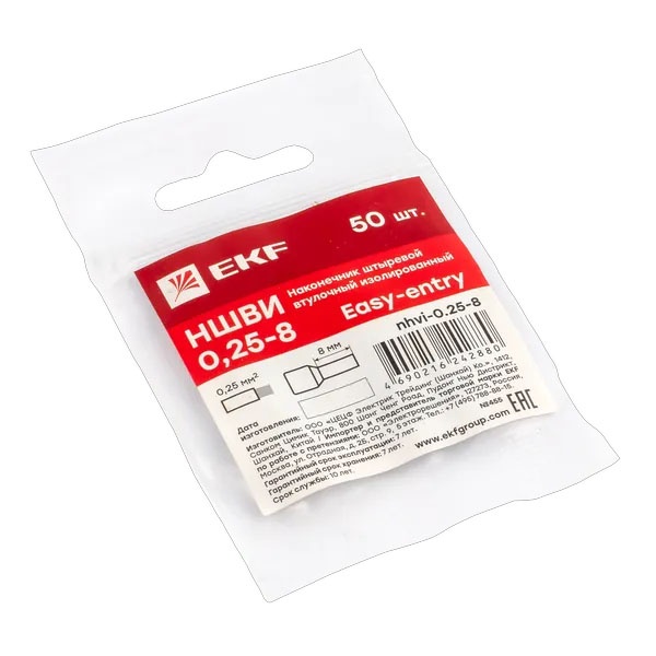 Одинарный наконечник штыревой втулочный изолированный НШвИ 0.25мм2 (50шт.) EKF nhvi-0.25-8