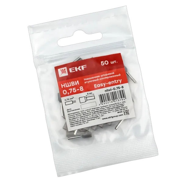 nhvi-0.75-8 Наконечник штыревой втулочный изолированный EKF НШВИ 0,75-8 (50шт)