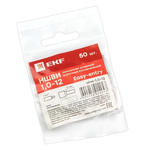 nhvi-1.0-12 Наконечник штыревой втулочный изолированный EKF НШВИ 1,0-12 (50шт)