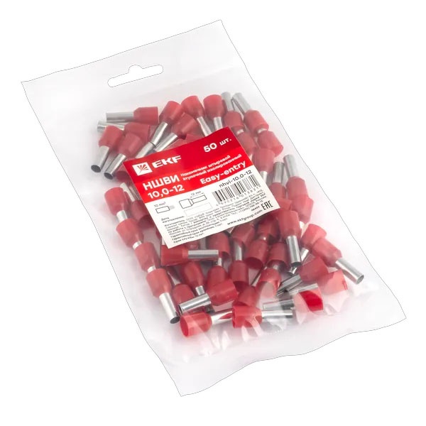 Одинарный наконечник штыревой втулочный изолированный НШвИ 10мм2 (50шт.) EKF nhvi-10.0-12