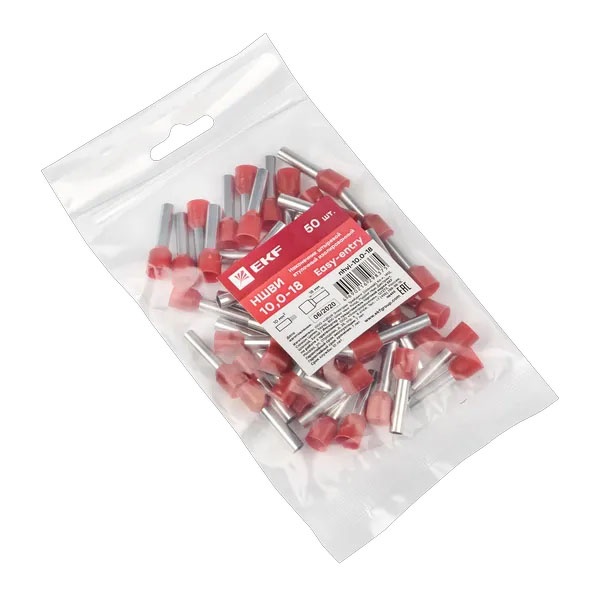 Одинарный наконечник штыревой втулочный изолированный НШвИ 10мм2 (50шт.) EKF nhvi-10.0-18
