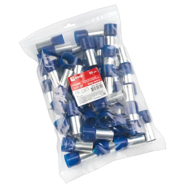 Одинарный наконечник штыревой втулочный изолированный НШвИ 120мм2 (50шт.) EKF nhvi-120.0-27