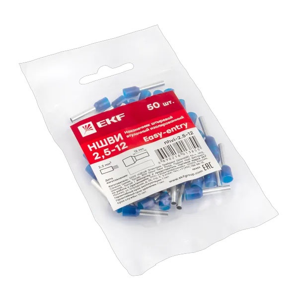 Одинарный наконечник штыревой втулочный изолированный НШвИ 2.5мм2 (50шт.) EKF nhvi-2.5-12