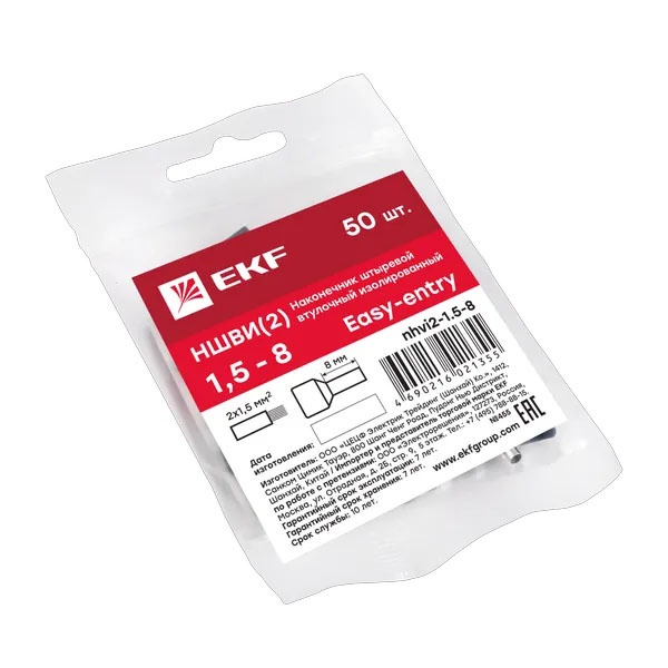 • Наконечник штыревой втулочный изолированный двойной EKF НШВИ2 1,5-8 мм2 (50шт)