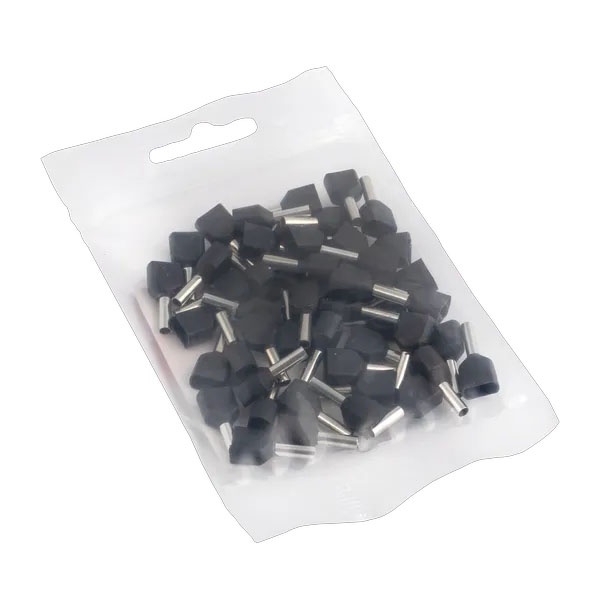 Двойные втулочные наконечники НШвИ2 разработаны специально для опрессовки и полностью заменяют необходимость облуживания многожильных медных проводов (например, ПВ-3, ПВС и других) при монтаже электрооборудования. Они состоят из медной луженой трубки с развальцованным концом для удобства ввода провода и полиамидной изолирующей манжеты.