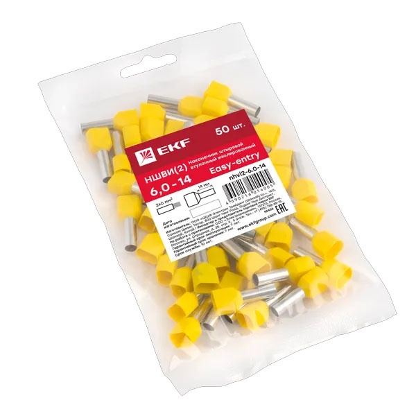 Двойной изолированный штыревой втулочный обжимной наконечник НШвИ2 6мм2 (50шт.) EKF nhvi2-6.0-14
