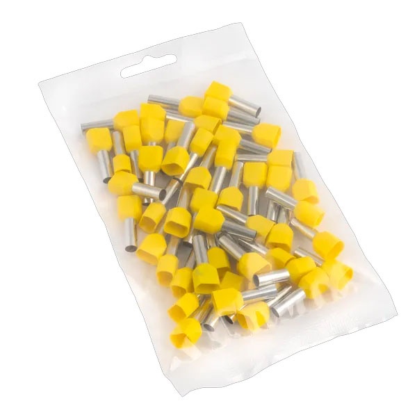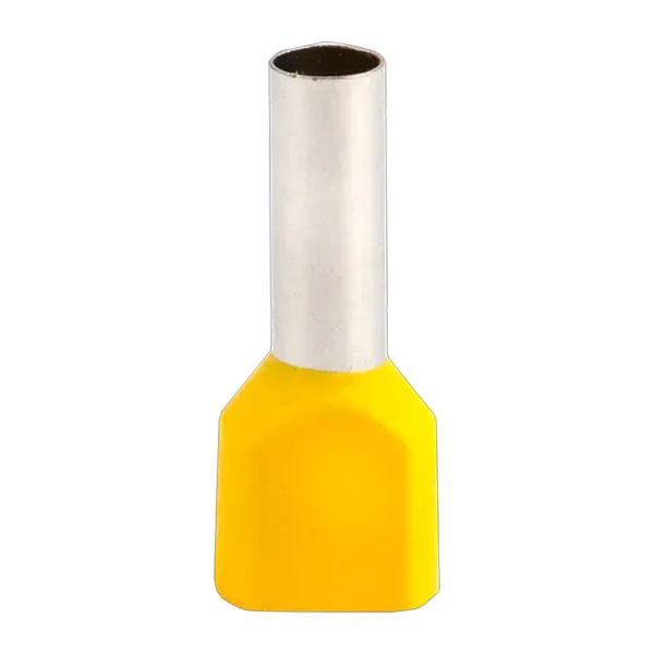 Двойные втулочные наконечники НШвИ2 разработаны специально для опрессовки и полностью заменяют необходимость облуживания многожильных медных проводов (например, ПВ-3, ПВС и других) при монтаже электрооборудования. Они состоят из медной луженой трубки с развальцованным концом для удобства ввода провода и полиамидной изолирующей манжеты.