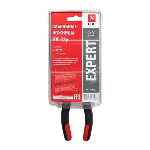 Кабельные ножницы для резки медных или алюминиевых проводов диаметром до 12 мм, длина 170 мм, ЭКФ серии Эксперт nk-12y-exp
