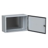 Боковые панели выгнуты из цельного листа. Задняя панель крепится к боковым панелям с использованием специального профиля, обеспечивающего пыле- и влагонепроницаемость. Наружная и внутренняя поверхности шкафа покрыты текстурированной эпоксидно-полиэфирной эмалью серого цвета RAL 7035. Благодаря своей прочности металлические шкафы идеально подходят для эксплуатации в помещениях, где они могут подвергаться внешним механическим воздействиям.