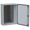 Боковые панели выгнуты из цельного листа. Задняя панель крепится к боковым панелям с использованием специального профиля, обеспечивающего пыле- и влагонепроницаемость. Наружная и внутренняя поверхности шкафа покрыты текстурированной эпоксидно-полиэфирной эмалью серого цвета RAL 7035. Благодаря своей прочности металлические шкафы идеально подходят для эксплуатации в помещениях, где они могут подвергаться внешним механическим воздействиям.