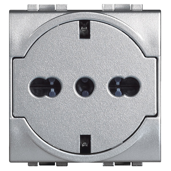 LIVINGLIGHT. Розетка 2К+З 16А 250В, немецкого/итальянского стандартов,с плоской лицевой панелью. Цвет Алюминий