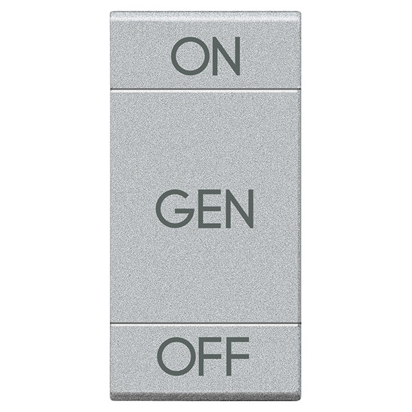 Двухфункциональная клавиша для управляющих устройств на один модуль с пиктограммой ON-GEN-OFF, цвет алюминий, Bticino MyHome LivingLight. NT4911AFN