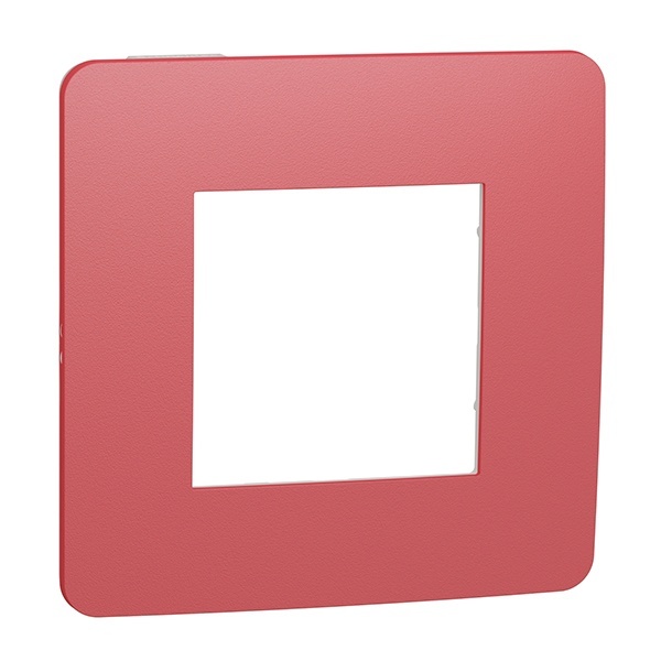 Рамка Schneider Electric UNICA STUDIO Color (красный) одинарная с задней панелью цвета белый.