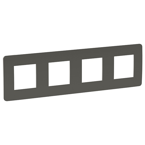 Рамка Schneider Electric UNICA STUDIO Color (дымчато-серый) четырёхместная с задней панелью цвета белый.