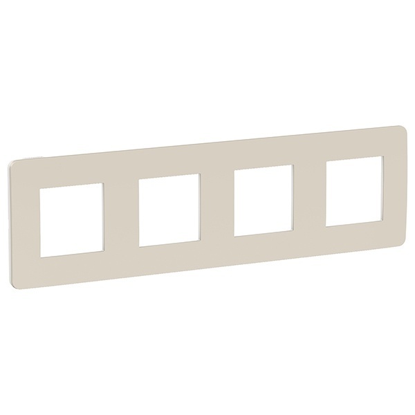 Рамка Schneider Electric UNICA STUDIO Color (шампань) четырёхместная с задней панелью цвета белый.