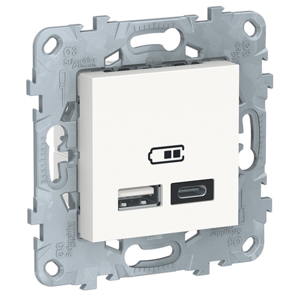 Встраиваемая 2-портовая зарядная розетка USB type A+С Уника Нью Шнайдер Электрик, цвет белый NU501818