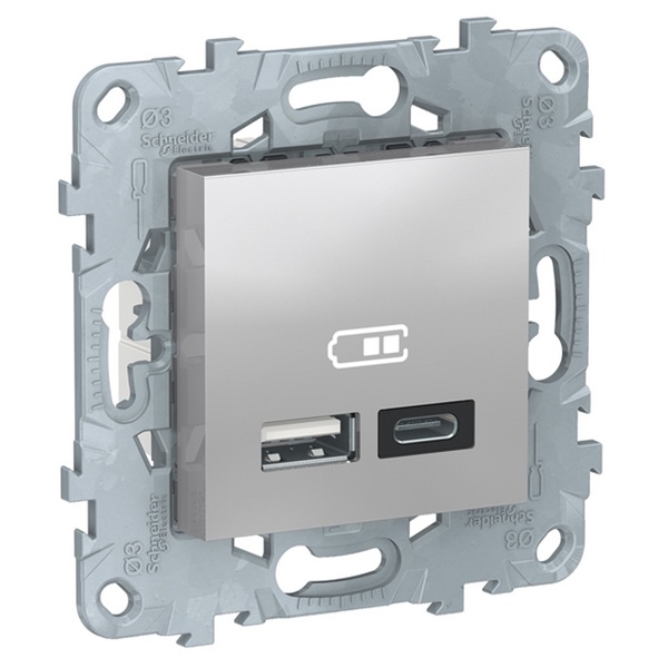 Встраиваемая 2-портовая зарядная розетка USB type A+С Уника Нью Шнайдер Электрик, цвета алюминий NU501830
