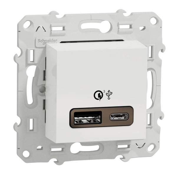 Встраиваемая 2-портовая розетка с функцией быстрой зарядки, с разъемами USB type A+С Уника Нью Шнайдер Электрик, цвет белый NU501918