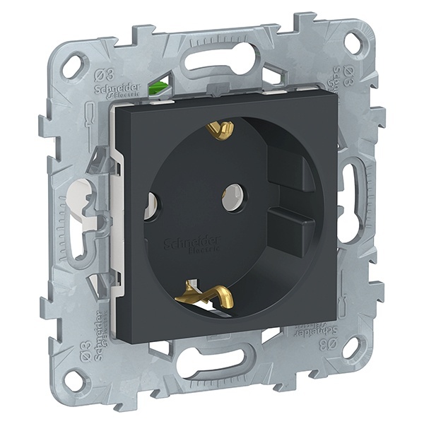 Розетка Schneider Electric UNICA NEW (антрацит) с заземлением, без шторок, с быстрозажимными клеммами предназначена для сетей до 250 В на ток до 16 А.