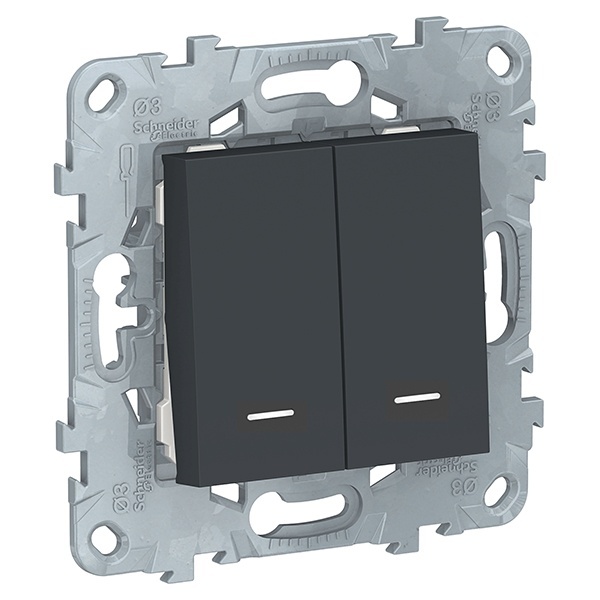 Выключатель двухклавишный Schneider Electric UNICA NEW (антрацит) с подсветкой предназначен для сетей до 250 В на ток до 10 А.