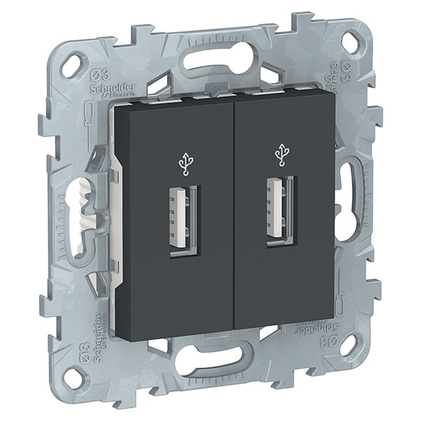 Розетка USB для передачи данных Schneider Electric UNICA NEW (антрацит) с двумя разъёмами. - Привлекательный внешний вид. - Сокращение времени монтажа. - Идеально подходит для зарядки мобильных устройств.